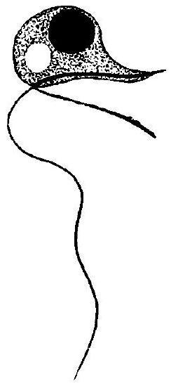 Fig. 353,4. *T. trigonula (Lamarck), Eoc. (Lutet.), Eu.(Hauteville, Fr.), 4 a-c, opposite sides, apert. view, X31 (*2117). --Fig. 354. T. rotunda d'Orbigny, Rec., Atl.O.; biflagellate gamete with axostyle, X6,000 (*820a).